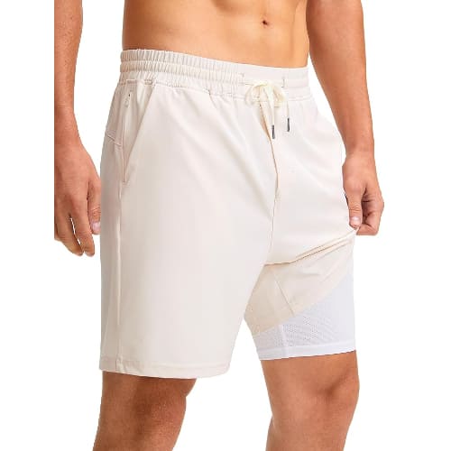Yes, the brand is well-known for its 2-in-1 design which includes a soft, breathable inner compression liner that helps prevent chafing and often includes a hidden pocket for a smartphone.